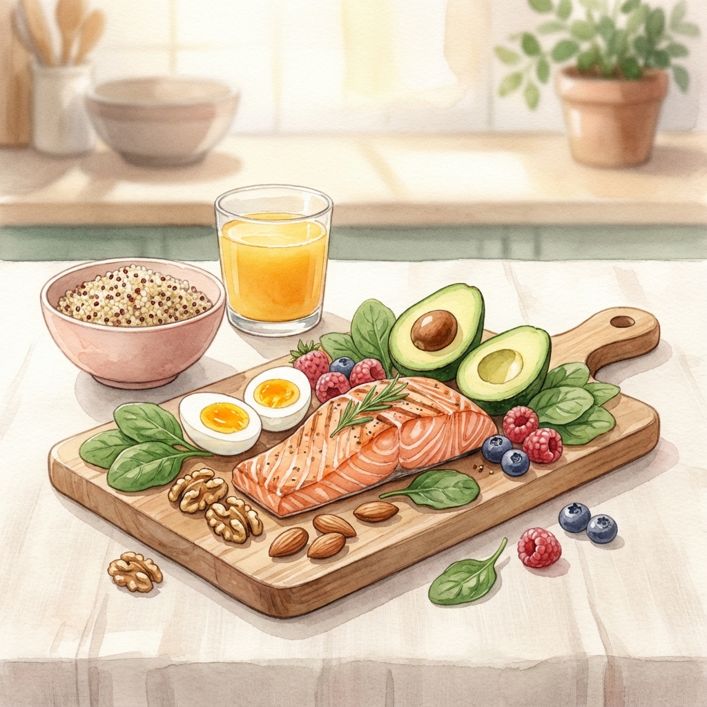 Cá hồi (DHA), trứng (Choline), sữa hạt, bơ, các loại đậu, rau lá xanh đậm.
